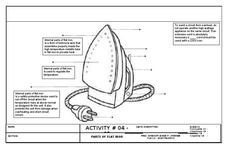 Ironing removes wrinkles in fabric and it requires heat. A 4-inch side cutting plier will come in handy as one of the electronic tools when one need to trim off excess component leads on the printed circuit board. Ask the owneroperator of the electric fan of what is the symptom of the unitb Request for the details of the symptom how does the symptom happen and how long it has beenobserved2.